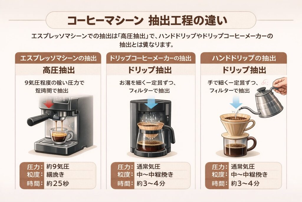 コーヒーメーカーは再現性が高い反面、抽出の自由度は手動より控えめです。